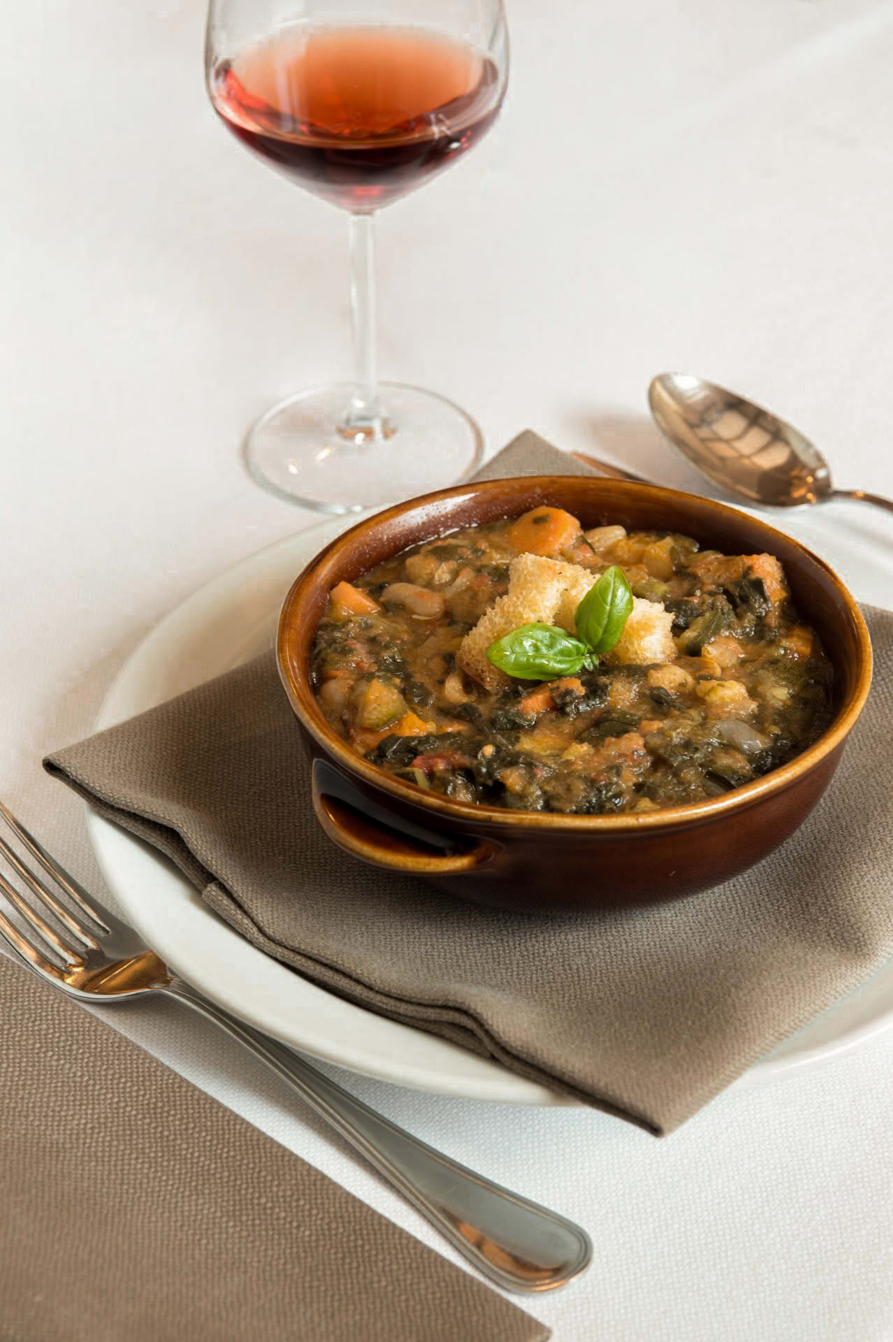 Scegliamo solo ingredienti di prima scelta e prepariamo ogni giorno pasta fresca, pane e grissini. Offriamo gustose opzioni per ospiti vegani e vegetariani.